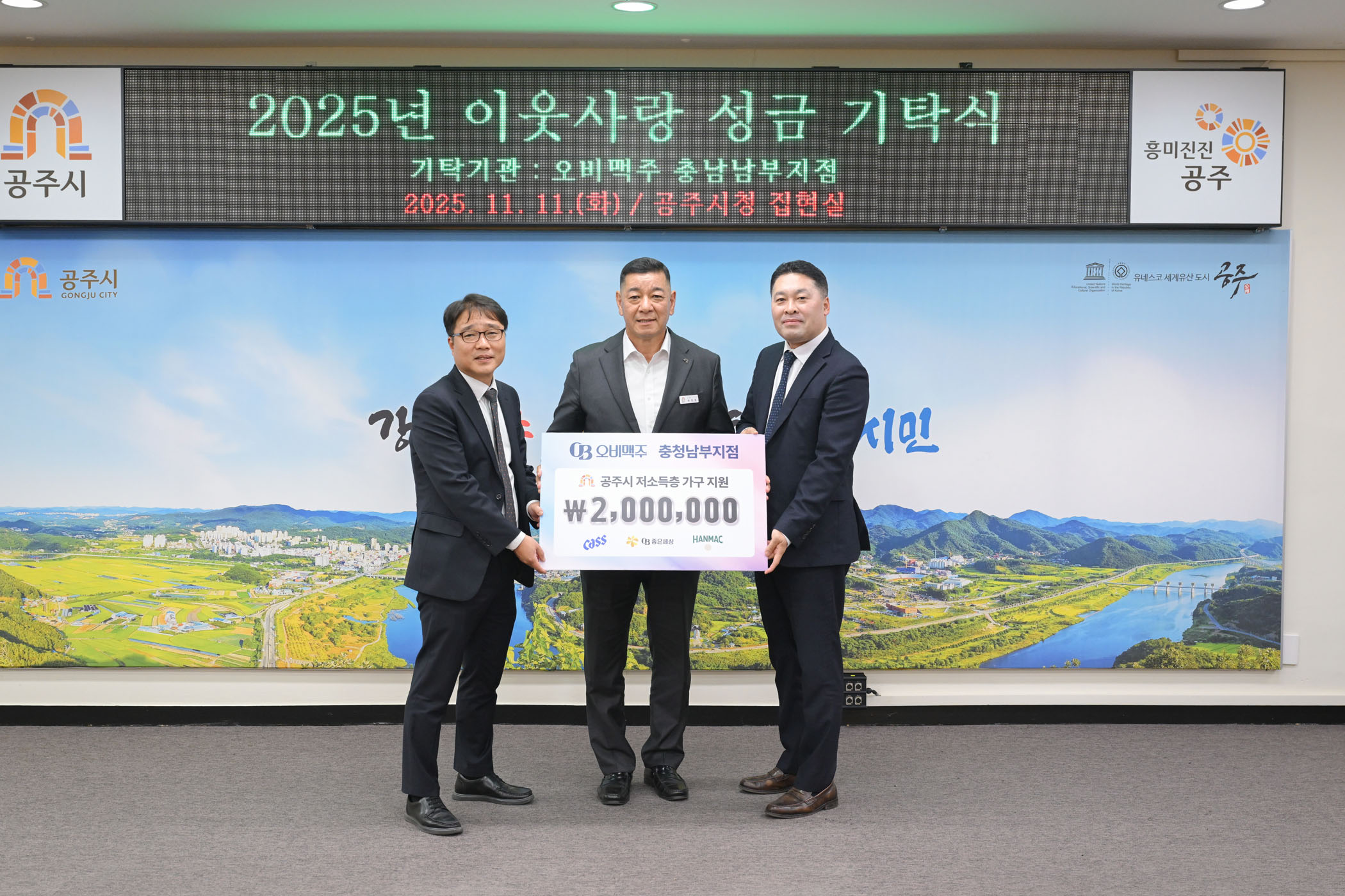 2025년 11월 11일 이웃 사랑 성금 기탁식 오비맥주 충남남부지점 [상황실]